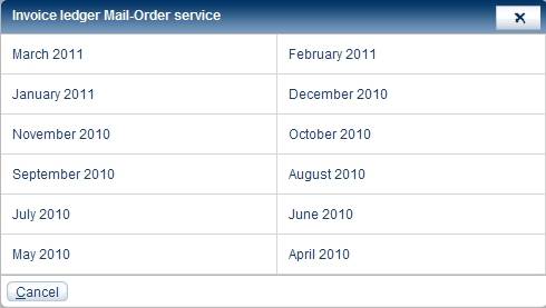 MO invoicesIf you make an order using the mail-order service, KNV prepares the invoice to the end customer in your name. In addition, a return form and a remittance slip are included. On the Additional features menu you will find the MO invoices command This command will take you to the invoice ledger with the customer invoices prepared by KNV by month.