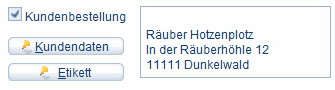 Kundendaten eingebenZu jeder Bestellung können Sie Kundendaten z. B. für den Abholzettel eingeben. Diese Daten können auch aus den Stammadressen übernommen werden.