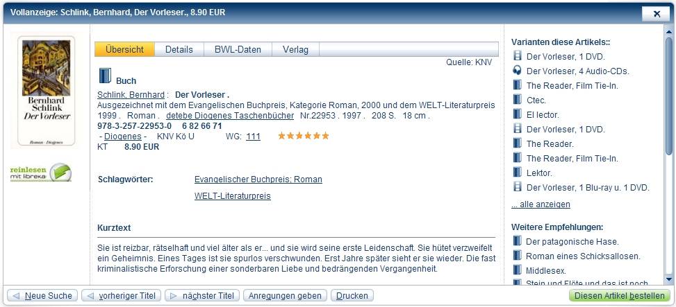 Die Titelanzeige zeigt alle Titel an, die mit der KNV-Suche gefunden wurden.
