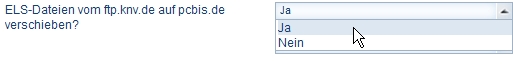 You can set whether the electronic delivery invoice no. is to be pushed by KNV to pcbis.de. Further information on electronic delivery invoices: In the ELS-Dateien vom ftp.knv.de auf pcbis.de verschieben [Push ELS-files (electronic delivery invoice) from ftp.knv.de to pcbis.de] field select: