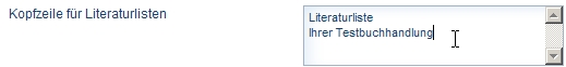 Enter in the Währungstext [Currency text] field the currency code that is to be used in the program after the price. You must use the ISO standard for the currency text. (EUR = Euro, CHF = Swiss Francs) Do not enter contradictory values! If you select the price information in euros and enter CHF as the currency code, the prices are displayed in euros but CHF is given after the prices as the currency. In the Kopfzeile für Literaturlisten [Header for literature lists] field you can enter an item of text that is to appear in the headers of your literature lists. If you want to enter a multiple line header, use the Return key to insert a line break. In the Gesperrte Bestellungen [Locked orders] field select automatically release