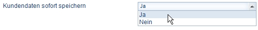 You can define that customer data, e.g. entered on an order slip or on ordering, are to be automatically saved in the regular addresses. In the Kundendaten sofort speichern [Save customer data immediately] field select:
