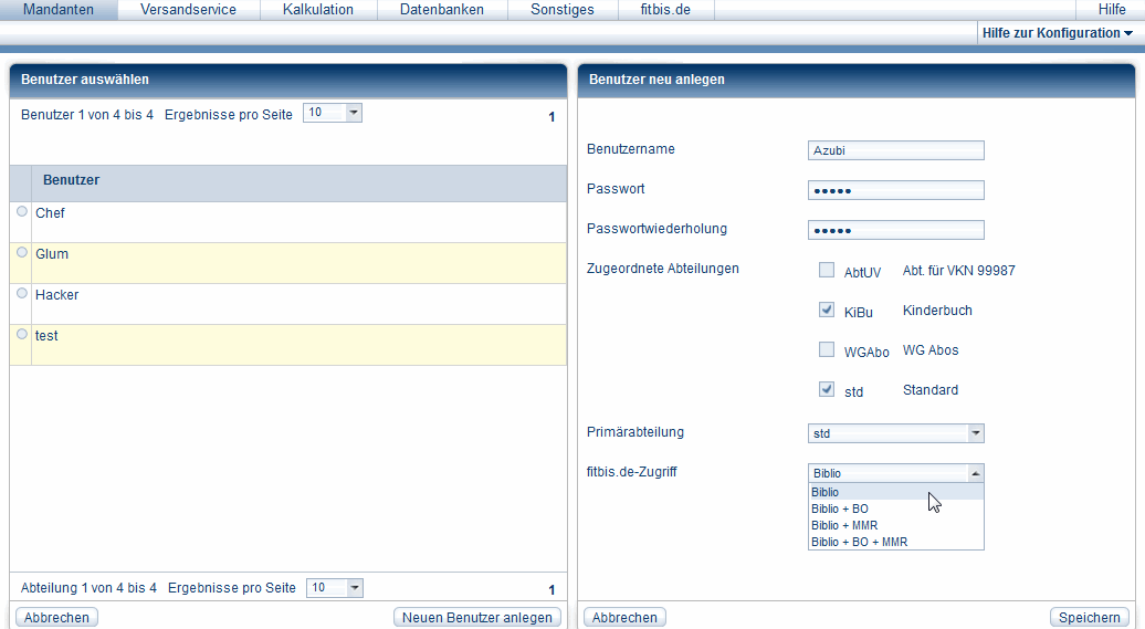 - Biblio + BO: diesem Benutzer steht auch das Kassenbackoffice zur Verfügung.