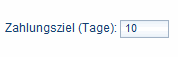 Geben Sie hier das gewünschte Zahlungsziel ein. Wenn für dieses Feld bereits ein Wert aus der Stammadresse übernommen wurde, so wird dieser nur für diese Rechnung überschrieben.
