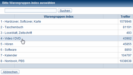 Kalkulation für WarengruppenindizesDurch die Kalkulation kompletter Warengruppenindizes können beispielsweise alle Nonbooks oder alle Softwareartikel kalkuliert werden. Mit Kalkulationsmodellen für Warengruppenindizes können Sie deren freien und die empfohlenen Ladenpreise kalkulieren. Dazu können Sie pro Warengruppenindex sowohl für die freien Preise als auch für die empfohlenen Ladenpreise jeweils ein Kalkulationsmodell anlegen. Kalkulationsmodelle für Warengruppenindizes bearbeiten