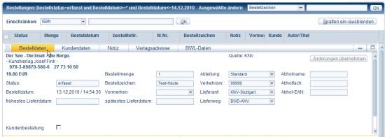 In the full view you can use buttons to display customer data, notes, the publisher's address and delivery address as well as commercial data on an order line.