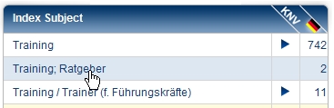 A table is displayed beside the fields. This table comprises a column with the terms in the index and a column with the number of related titles.