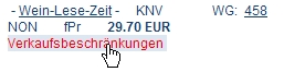 Gibt es zu einem Titel eine weitere Auflage, wird dies als Link dargestellt, mit dem Sie zu dieser Auflage gelangen. Die Vollanzeige informiert Sie auch über die Sprache des Titels sowie über Vorbestellpreise und spätere Ladenpreise. Sie sehen zudem die Titelkategorisierung nach Gängigkeit (Star Rating) und die Sigel anderer Barsortimente und der Verlagsauslieferung (U für Umbreit, VA für Verlagsauslieferung KNO). Bei E-Books wird Ihnen zusätzlich ein Link mit ISBN der Printausgabe angeboten. Dazu wird das Datenformat und welches Digitale Rechtemanagement (DRM) angewandt wird, mit angezeigt. An einem B neben dem Preis erkennen Sie ein eBundle: Einige Titel unterliegen einer Verkaufsbeschränkung für bestimmte Länder. Der entsprechende Link öffnet einen Dialog, in dem die jeweiligen Länder aufgelistet sind, in denen der Titel nicht verkauft werden darf.