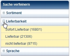 Links oben und links unten in der Titelanzeige sehen Sie, wie viele Titel gefunden wurden. Mit dem Auswahlfeld können Sie einstellen, wie viele Titel Ihnen auf einer Seite dargestellt werden.