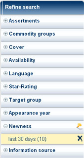 On the left beside the titles found, various categories are displayed that you can use to restrict the number of hits. The number of titles in each category is displayed in brackets.