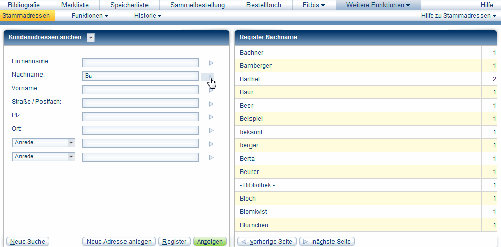 Das Register verwendenZur Adresssuche können Sie auch das Register verwenden.