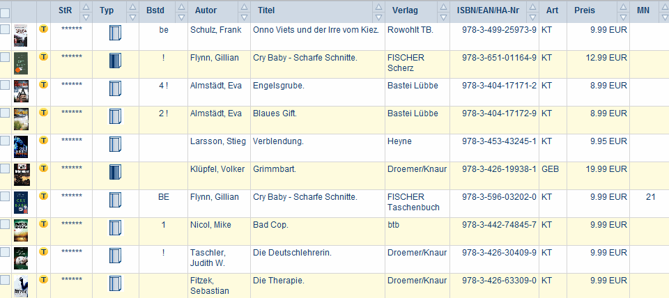 Stamm- und Hausartikel in der TitelanzeigeIn der Titelanzeige erhalten Sie in fitbis.de verschiedene Informationen zu Stamm- und Hausartikeln. Die Titelanzeige verfügt bei fitbis.de über die Spalte Bestand, in der folgende Informationen enthalten sind.