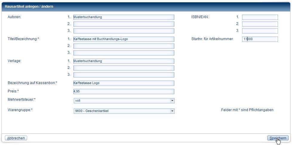 Über die fitbis.de-Daten können Sie manuelle Bestandsbuchungen durchführen, Warenbewegungen kontrollieren und Nachbestellregeln für den einzelnen Artikel ändern. Hausartikel ändern oder löschenWenn Sie Hausartikel über die Suchmaske suchen, werden in der Trefferliste in der Spalte ISBN/EAN auch Hausartikelnummern angezeigt. Sie können einen Hausartikel in der Titelanzeige ändern oder gegebenenfalls löschen.