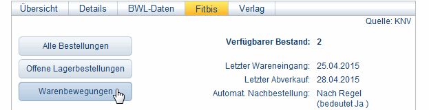 In der Vollanzeige der Titelanzeige finden Sie unter Fitbis für die bewirtschafteten Artikel einen Link Warenbewegungen.