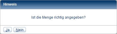 - Wenn Sie sich nicht sicher sind, klicken Sie auf Nein und prüfen noch einmal die eingegebene Menge.