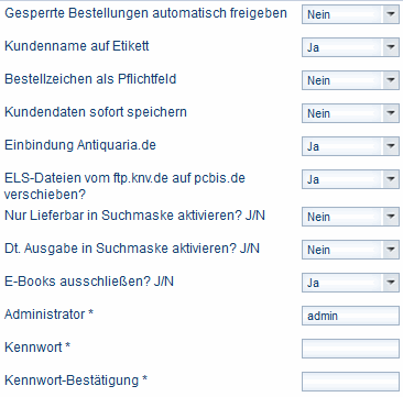 - Wählen Sie im Feld Einbindung Antiquaria.de, ob bei der Titelsuche bei vergriffenen Titeln automatisch ein Link zu Antiquaria.de angezeigt werden soll.