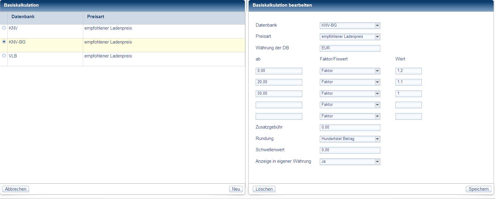 • Wählen Sie im Konfigurationsmenü Kalkulation die Basiskalkulation.