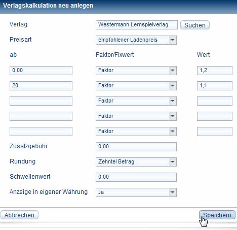 Kalkulationsmodelle für Verlage bearbeiten
