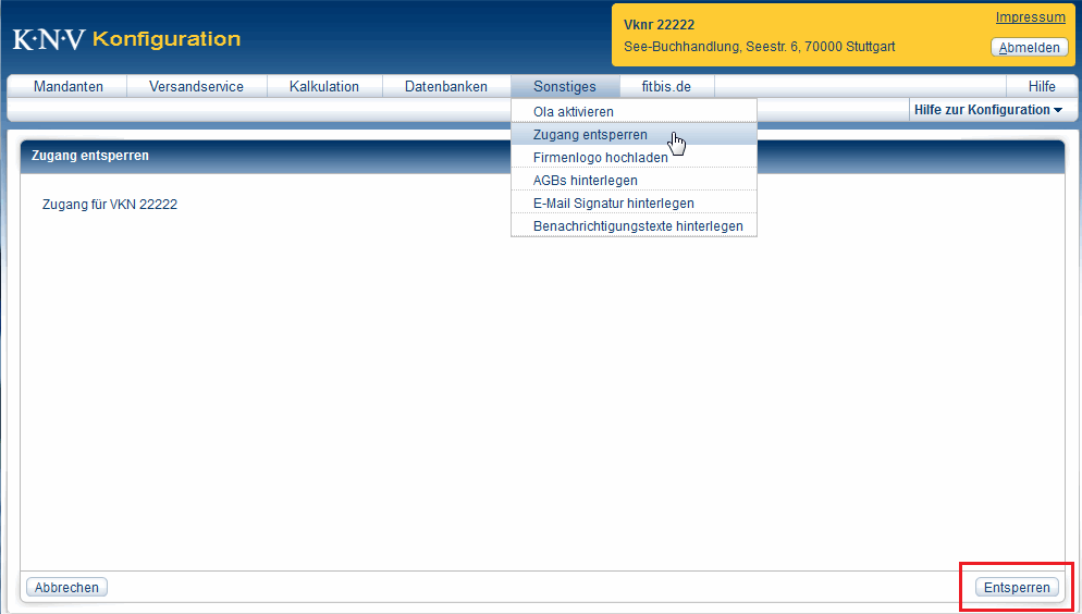 Zugang entsperrenAus Sicherheitsgründen wird nach 10 vergeblichen Anmeldeversuchen hintereinander der pcbis.de/fitbis.de-Zugang gesperrt. Diese Sperrung können Sie im Konfigurationsprogramm wieder aufheben.