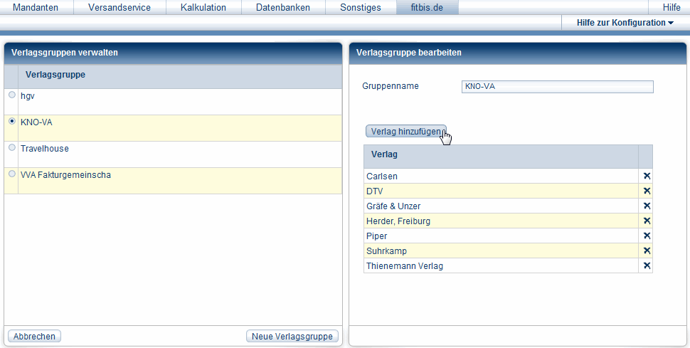 - Wählen Sie im Konfigurationsprogramm im Menü fitbis.de den Befehl Verlagsgruppen.