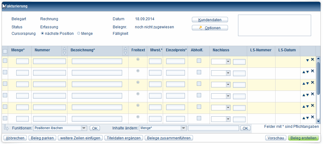 Anschließend erfassen Sie die Positionen für einen Beleg.