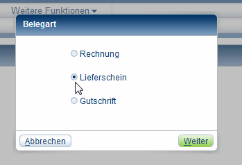 Wählen Sie aus, ob Sie eine Rechnung, einen Lieferschein oder eine Gutschrift erstellen wollen.