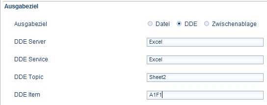 - If you want to save the data to a file, select the related field. Enter a path and file name in the Zieldatei [Target file] field. This path and file name is then used as the default on export to a file.