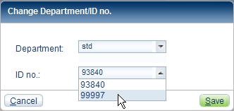 Changing department or ID numbersDuring a pcbis.de session (that is without logging out and logging in again), you can change the ID number or the department. On the Department/ID no. menu select the Change Department/ID no. command. Select the department or ID number that you want to change to and click Save. Related subjects: