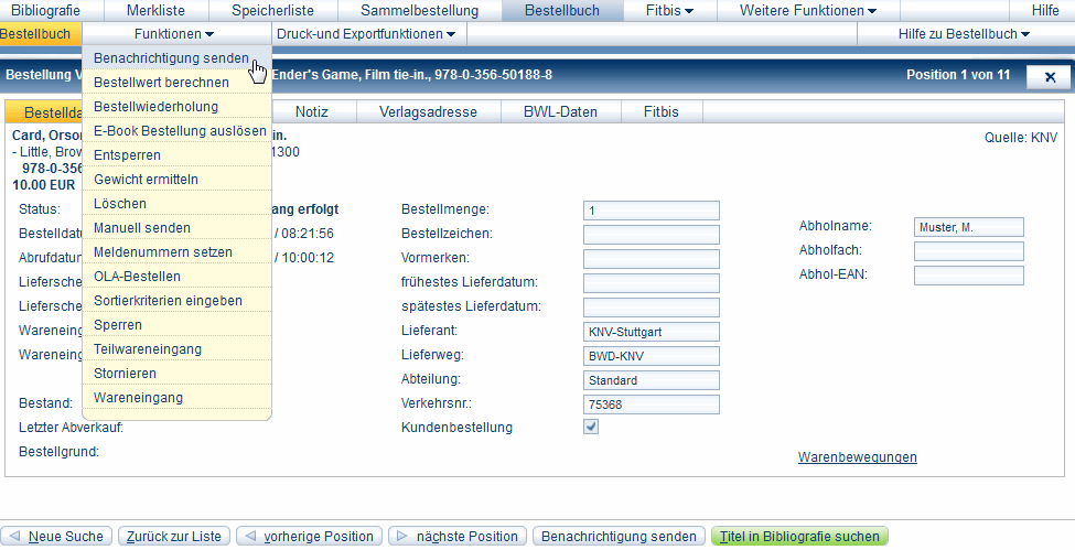 - Öffnen Sie die Vollanzeige einer beliebigen Bestellung im Bestellbuch.