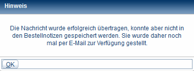 Nach dem Versenden der Nachricht (SMS oder E-Mail) erhalten Sie eine Erfolgsmeldung: