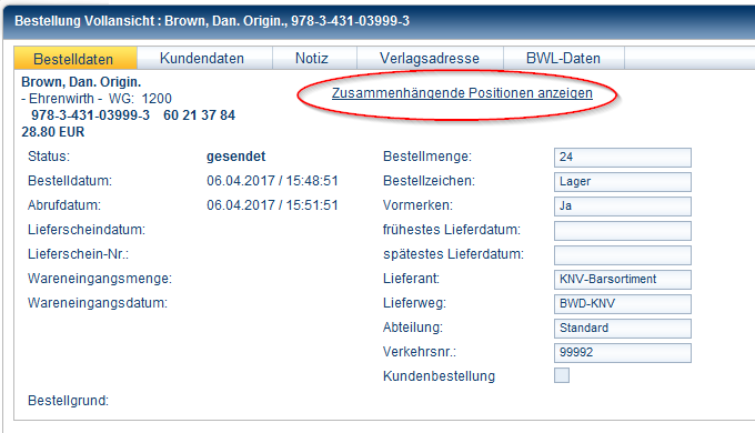 Kundenreservierung auf LagerbestellungAuf eine noch laufende Lagerbestellung können Sie eine Kundenreservierung eintragen.