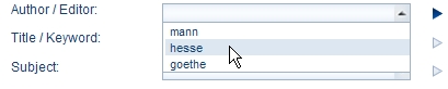 - Click the arrow beside Author, Title / Keyword, Subject, ISBN/EAN, Publisher or Format field (in the example shown: "Author"). Up to the last 10 terms entered are listed.