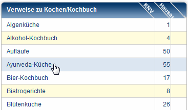 Neben den Eingabefeldern wird eine Tabelle eingeblendet. Diese besteht aus einer Spalte mit den Begriffen im Register und einer Spalte für jede geöffnete Datenbank mit der Anzahl der jeweils gefundenenTitel.