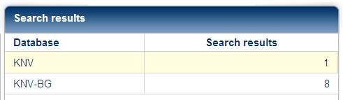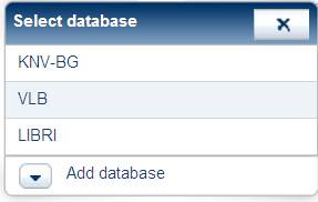 Expanding search to several databasesThe search can cover several databases at the same time. For this purpose first select additional databases, you will then automatically search in several databases and the titles from the additional databases selected added to the title window. The databases included in the configuration can be selected in Add database. The database is displayed in the list of databases If you display the search results, a line is displayed per database. Not all search terms are available in all databases. E. g. you cannot search in KNV-BG by scale, age of reader, ISMN or title number. The number of titles per database is displayed in Search results. All titles found in the databases are added to the title window.