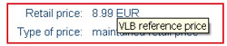 In case the „German Books in Print“ database (VLB) is appointed price sovereignty, this is being shown as VLB reference price in every price field when moving your mouse over it. It means that this price can be relied on definitely.
